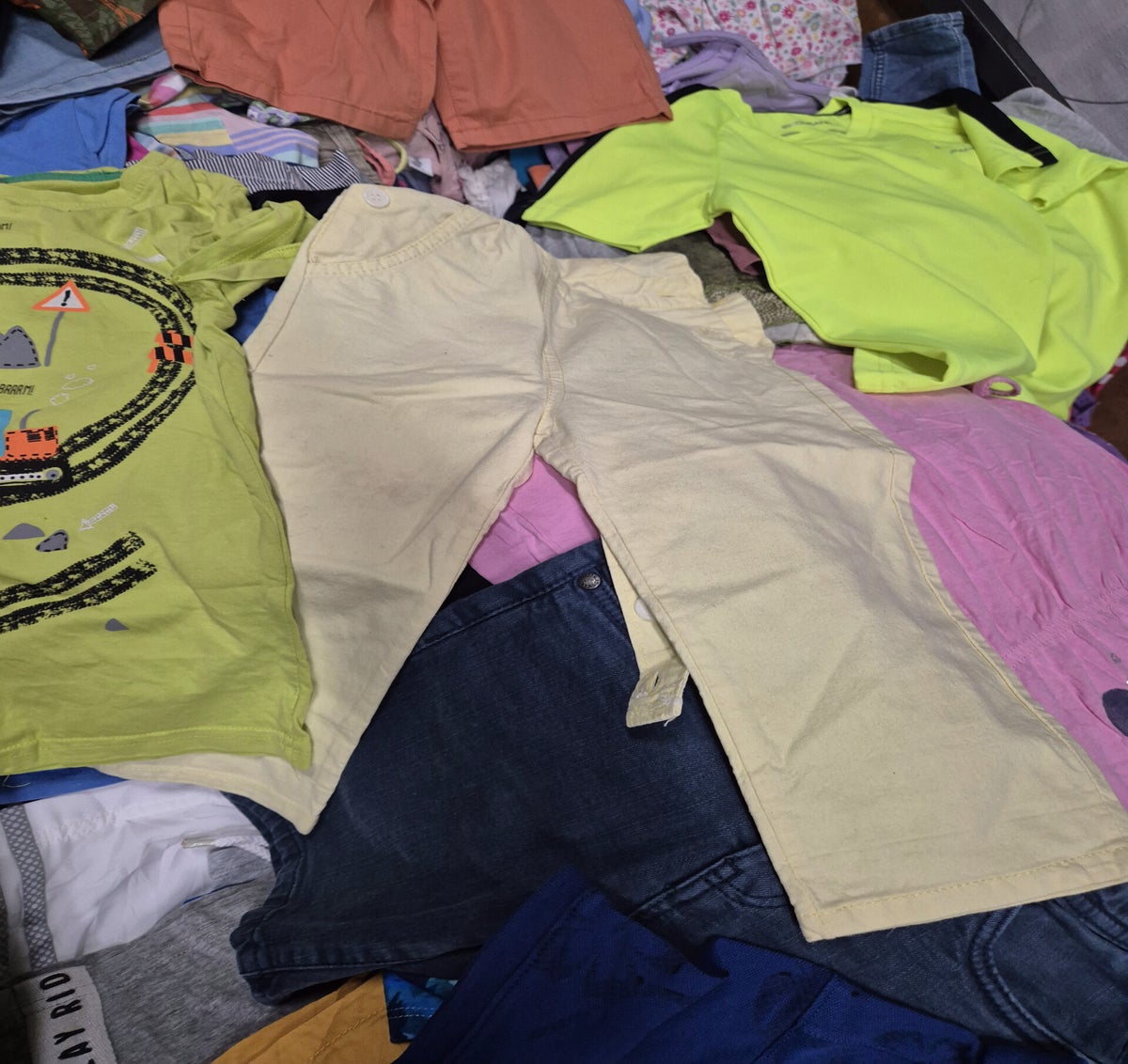 All clothing items are carefully sorted by category (such as pants, T-shirts, jackets) and by target demographic (men, women, youth, and children). This ensures consistency, quality, and accurate order fulfillment.